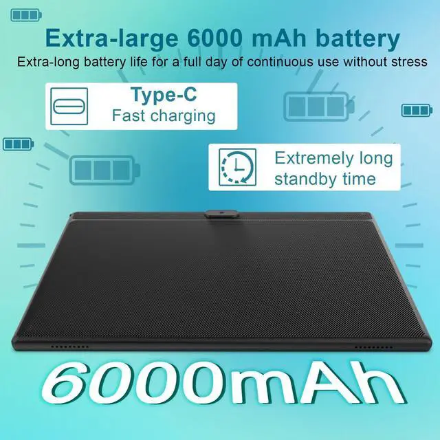 You can get latest Google service, such as Google Play, Facebook, Twitter, YouTube, TikTok, Line, Instagram and other trendy social apps. ^^ Tablet 10 inch IPS touch screenThis tablet adopt 10 inch IPS touch screen with a resolution of 1280x800, eye protection full screen has a larger visual area and a wider visual field, delivering rich and clear colors for an enjoyable visual experience when you play games, watch movies, read and more. tablet boasts a long-lasting 6000mAh battery and a low-power CPU, allowing you to use it for over 10 hours.