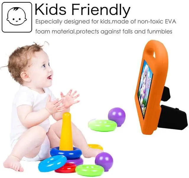 Features: Shock ProtectionMade of sturdy kid-safe EVA foam to protect your tablet from daily bumps and scrapes. Precise CutoutsCustomized openings allow to access to all ports, buttons and cameras without removing the case. Top HandleLarge handle is designed for an easy and comfortable grip, and convenient for carrying outdoors. Stable StandBuilt-in 2 folded bases to prop your tablet up on the desk for hands-free horizontal viewing or typing.