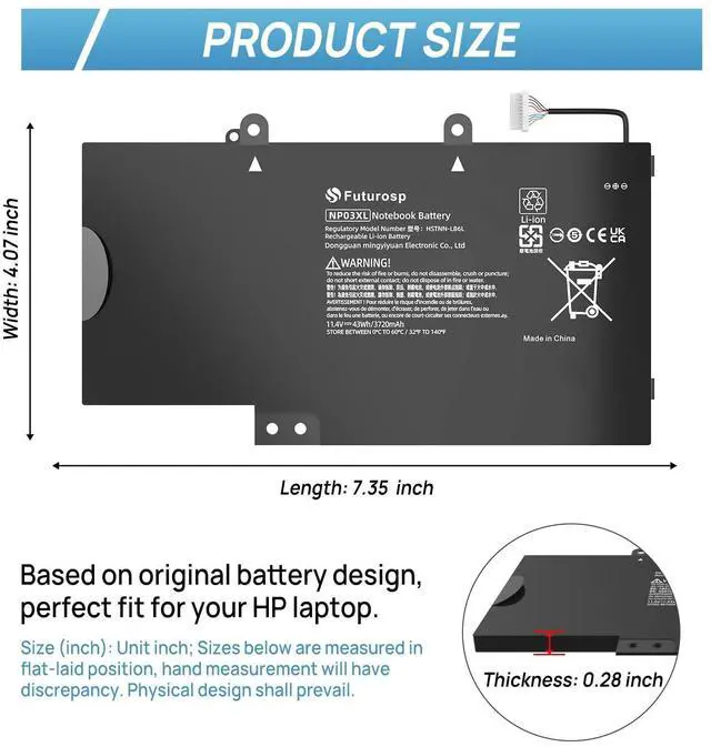 FUTUROSP NP03XL 761230-005 Laptop Battery Replacement for HP Envy