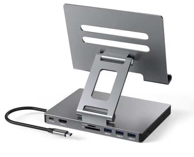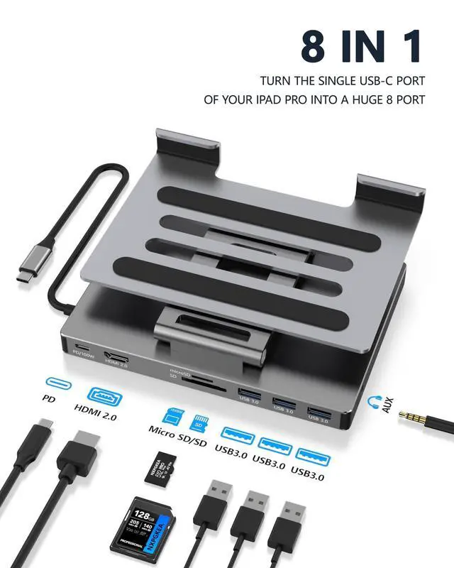 Type C Docking Station This product is a clip-shaped USB C docking station that extends the limited USB-C connectivity of your devices with 1 HDMI port, 3 USB 3.0 ports, SD/TF outputs, 1 PD port and 1 3.5 mm female port ^^ Great Compatibility This USB C dock provides a compact and convenient solution for users who use a USB 3.1 Type-C interface such as Macbook, iPad Pro, notebook, tablet and mobile phone etc. The docking station is compatible with WIN XP / 7 / 8 / 10 / MAC 10.2. 8 and above, Linux system ^^