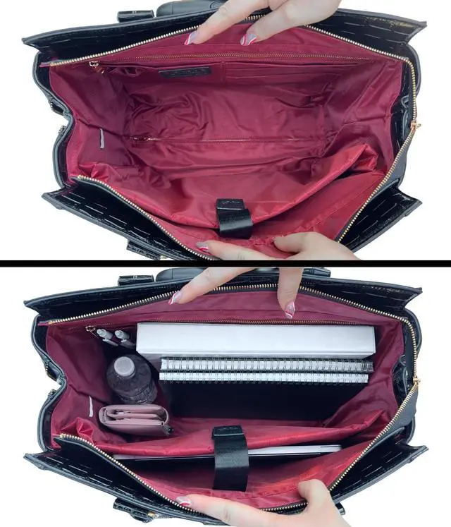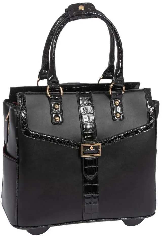 For women looking for the best work bags for women, the Downtown Diva Rolling Laptop Bag ticks all the boxes. Its a stylish work bag for women that offers professional aesthetics and practical design features. ^^ Gold tone hardware plus a lovely center buckle accent. Premium branded metal zippers with a sleek, upscale look. ^^ Designed with reinforced padding, the dedicated pocket safeguards your tablet or iPad and provides secure housing for 13" to 17" laptops. ^^ The fully lined interior features five organizational pockets, complemented by three convenient exterior pockets for quick access to essentials.
