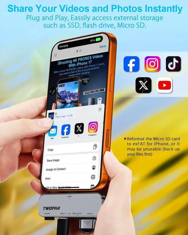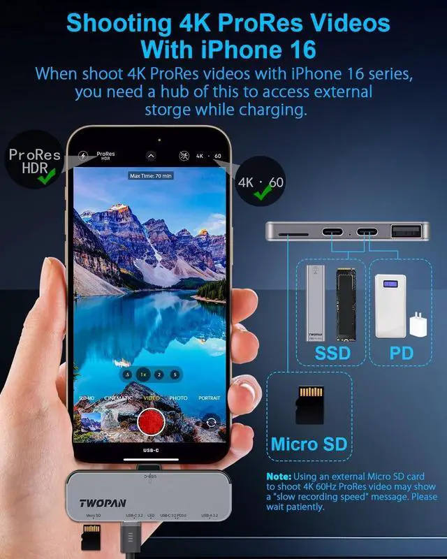 Video Shooting: Easily shoot breathtaking 4K ProRes footage on your iPhone 16/15 using external SSDs or hard drives via the USB-C 3.2 port. Ensure your storage device offers sufficient read/write speeds for smooth filming ^^