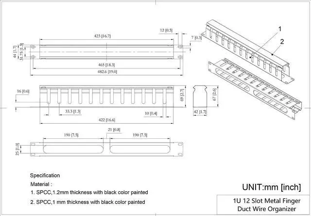 Product Size: H 1.75 * D 2.72 * W 19 inch, 12 Slots, Each