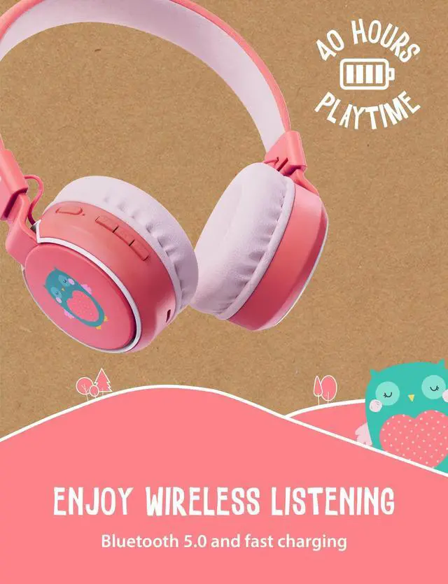 LONG LASTING FUN: The toddler headphones Bluetooth functionality allows you to connect these kids accessories to any tablet or phone for easy entertainment. With 40 hours of playtime and an in-built microphone, your kid can chat with their friends whenever and wherever they want. USB Type-C charging also ensures a fast charge time of 2 hours. With an AUX-in cable included for continued use as wired headphones, the fun will never stop with these kids wireless headphones ^^
