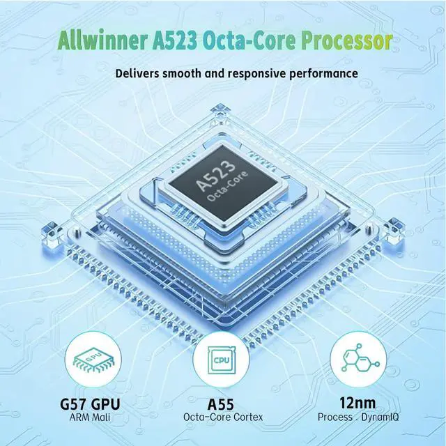 [Next-Level Android Tablet Experience] This tablet runs on the latest Android 15 OS. It delivers smoother performance, faster app launches, and enhanced responsiveness. Enjoy broader app compatibility along with improved privacy, security, and customization without the interruption of unwanted ads. ^^ [Octa-Core Processor for Seamless Use] The Paitanry android tablet is powered by the Allwinner A523 octa-core processor, built on efficient ARM Cortex-A55 architecture and equipped with a Mali-G57 GPU. This combination ensures smooth app performance, responsive multitasking, and an energy-efficient experience for everyday use. ^^ [Room for Everything You Love] The Android 15 tablet comes equipped with 8GB of memory (4GB physical + 4GB virtual) and 64GB of high-speed internal storage, expandable up to 1TB via Micro SD card.