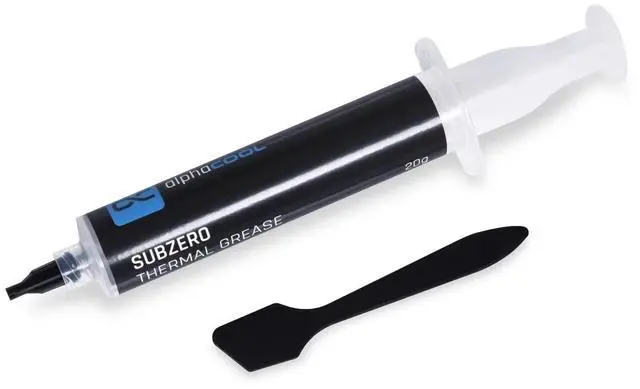 The Alphacool Subzero Thermal Grease is intended for all users who want to achieve optimum performance with their system. With a thermal conductivity of 16 W/mK, this electrically non-conductive thermal paste suitable for high contact pressures is an excellent choice when performance and ease of application are required. ApplicationSubzero 16W/mK Thermal Grease can be optimally applied due to its high viscosity. For perfect application of the thermal paste, a plastic spatula (included in delivery) or a comparable tool should be used. PropertiesAlphacool's Subzero Thermal Grease has a high thermal conductivity of 16 W/mK, making it one of the best performing thermal pastes on the market.