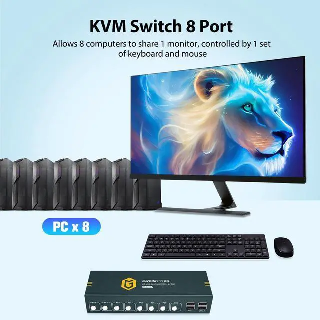 [8 Computers Share 1 Monitor]You can control up to 8 computers with only 1 set of keyboard and mouse, sharing on 1 monitor. Just wait 3-5 seconds you will complete the switch, avoiding you from plugging and unplugging between computers and saving you time.