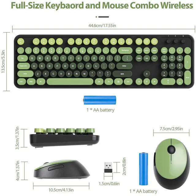^^ Wide Compatibility: This full size retro keyboard and mouse wireless is compatible with PC, laptop, and computer, making it versatile and suitable for various devices. Whether you're working, gaming, or browsing the web, this combo is designed to meet all your needs. ^^ Auto Sleep and Long Battery Life - This cute retro typewriter keyboard with round keycaps features Auto Sleep Mode, automatically conserving energy after 5-8 minutes of inactivity. With its long battery life, you can enjoy extended use without frequent recharging or battery replacements.