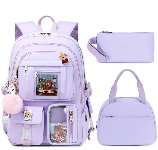 LXYGD Laptop Backpacks 16 Inch School Bag College Backpack 3 PCS with Lunch Box Pencil Pouch Set Large Travel Daypack Kawaii Bookbags for Teens Girls Women Students (Purple)