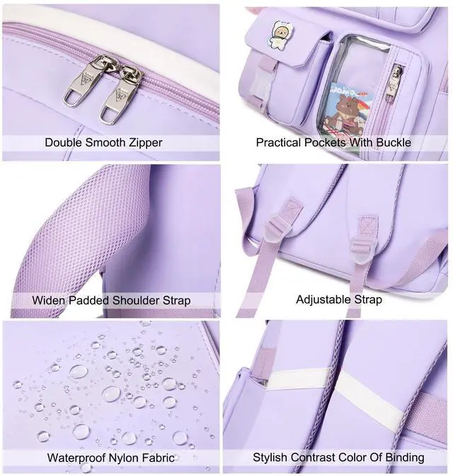Material &Smooth Zipper: The campus backpack is made of waterproof, ultra-lightweight, high density nylon fabric and cute printing polyester lining. The metal zippers closure are used by the premium quality zippers to ensure the long-lasting usage ^^
