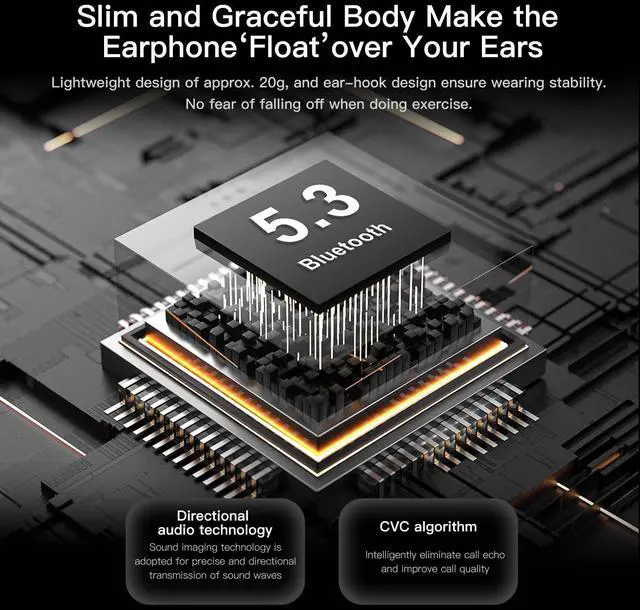 Open Ear Design & Air Conduction -- Ulian air conduction headphones, powered by the cutting-edge air conduction technology which transmit premium audio through the air directly to your ear, enabling clear sound reproduction even in noisy environments Our open ear design headphones creatively incorporates the Mobius Design, features a completely open-ear design that allows earbuds rest gently and securely on your ears. Achieve the real nothing in your ear listening experience. ^^ IPX6 Waterproof Sport Headphone -- Ulian open ear sports headphones is certified IPX6 waterproof, which is resistant to sweat. Perfect for outdoor and indoor sports like running, cycling, hiking, jogging, etc.