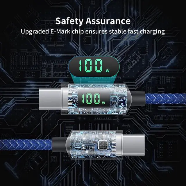 Smart LED Display Real-time charging power visible, show charging status and signify high power process. Built-in smart chips monitoring the charging power and adjusting current and voltage automatically, avoiding damage to the battery in case of unstable current. (Please note display module just show charging power, it neither increase nor decrease charging current) ^^ 100W High-Speed ChargingSupports up to 100W (20V 5A) charging speed, with a max output of 100W charger, SooPii USB C to USB C cable can charge any Type-C devices from phones to laptops. Pair with a 100W USB-C Power Delivery charger to power up a MacBook Pro 16 in 2 hours.