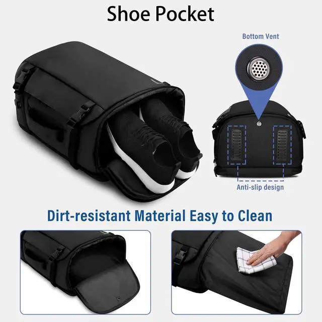 MULTI-COMPARTMENTS DESIGN: The backpack is equipped with 14 pockets that can hold not only laptop or tablet, but also clothes, books, magazines, etc. There is a leak proof pocket for toiletries. It also comes with a water bottle pocket and a passport pocket to keep your belongings organized. There is also a separate shoe pocket at the bottom for storing shoes. This backpack can be used for work, travel and outdoor activities ^^