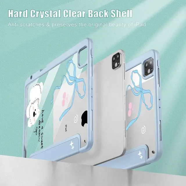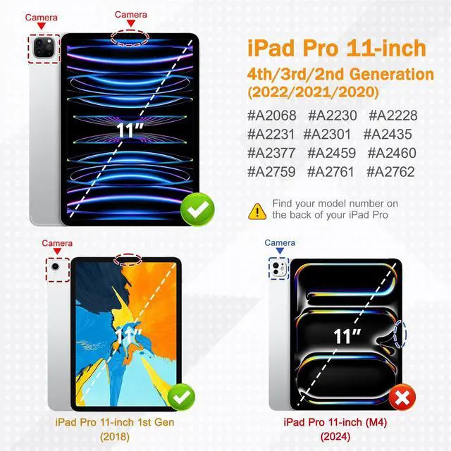 Compatibility with: Exclusively designed for iPad Pro 11 Inch 4th Generation 2022 (A2435/A2759/A2761/A2762), iPad Pro 11 Inch 3rd Generation 2021 (A2301/A2377/A2459/A2460), iPad Pro 11 Inch 2nd Generation 2020 (A2228/A2068/A2230/A2231) and iPad Pro 11 Inch 1st Generation 2018 (A1980/A2013/A1934/A1979), Not compatible with any other iPad devices. ^^ Full ProtectionMade of durable PU leather and TPU, front and back covered by soft PU, the inside durable TPU can fix your Tablet and protect its back cover and four corners, maximum protect your tablet from drop and scratch, the surface is soft and silky to provide a comfortable touch to the skin. ^^ Clear Black CoverHardshell back cover with flexible TPU bumper protects your iPad from shocks, drops and impacts. Soft microfiber interior front prevents your tablet from scratched. And the crystal clear back cover will proudly show off the Apple icon. ^^ For Apple Pencil ChargingBuilt-in Pencil holder & adapter slot, designed for charge/pair with the 2nd Gen Pencil. Grab your Pencil & adapter effortlessly whenever you want, easily to carry your pencil with your device. (Case only, other accessories not included! ) ^^ Comfortable Use Featuring a trifold design that allows for two positions.