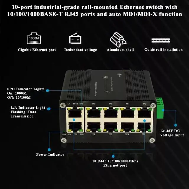 ^^ Ultra-Compact Form Factor: At only 3.74 3.46 1.81 inches, this mini switch fits into tight racks, cabinets, or control panels, making efficient use of limited space.