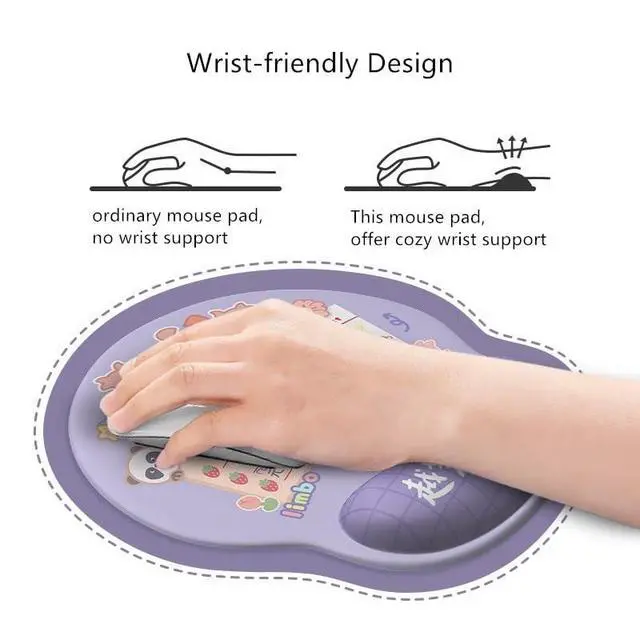 Cute Design: The pad features a funny cartoon design and an wrist support to ensure a perfect fit with wrists. For those who face the computer for a long time, this helps to relieve the fatigue of long time typing and avoid the soreness of