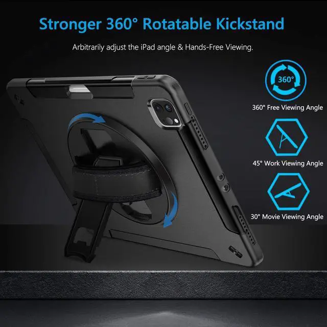 REINFORCED KICKSTAND & ADJUSTABLE HANDHELD: 360 rotating foldable stand provides multiple angles, flexible to view, typing, or draw. Ergonomically adjustable hand strap more easily grip, the matte coating prevents slipping out of your hand ^^ STABLE ROTATABLE KICKSTAND & ADJUSTABLE HANDHELD: 360 rotating foldable stand provides multiple angles(30/45/60), nice to view, typing, or draw. Precise cutout perfectly aligns up to ports, controls to easily access all iPad functions ^^ DECHATABLE SHOULDER STRAP & DETAILED CRAFTING: iPad 11 Case come with an ultra-portable detachable strap to ensure maximum portability wherever you go. Release your hands completely during hiking, traveling, or other outdoor activities