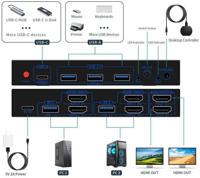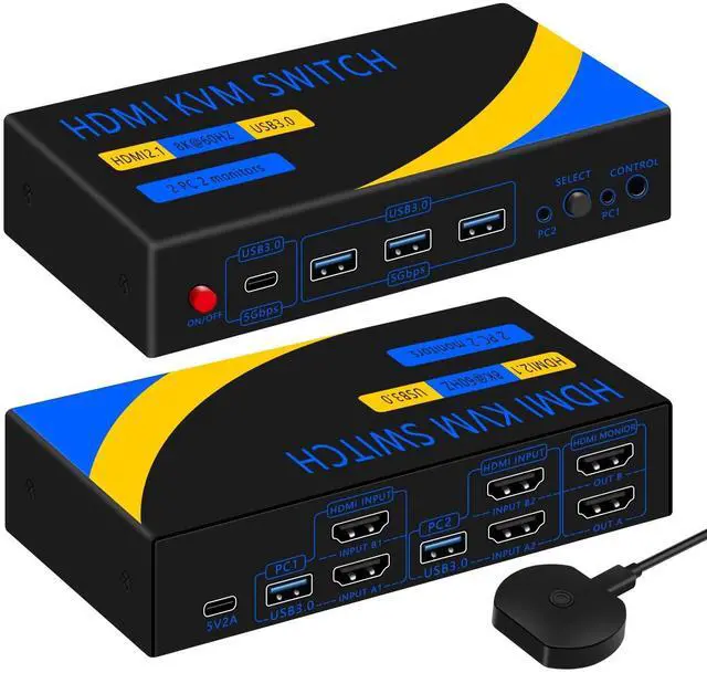 Dual Monitor Kvm Switch 2 Monitors 2 Computers HDMI 4k@60HZ,USB3.0. kvm switches 1 Monitors 2 Monitor 2 Computers,USB switcher 2 Computers Keyboard Mouse Switch (USB3.0+8KHDMI(3A1C))