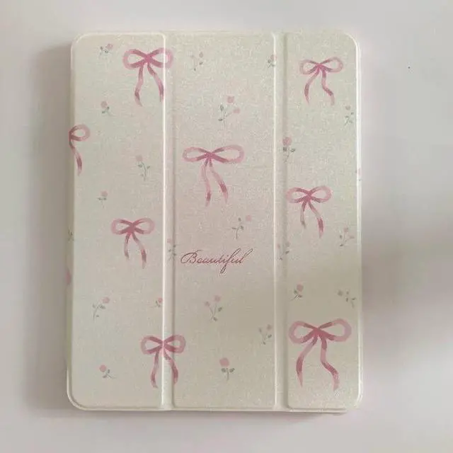 Auto Sleep/Wake Adjustable Stand Leather Folio Case with Kickstand Stylus Holder for Apple iPad Air 3 10.5-inch 3rd Generation 2019 Pink Bow Beautiful Floral Cute Chic Adorable Lovely Girls Kids