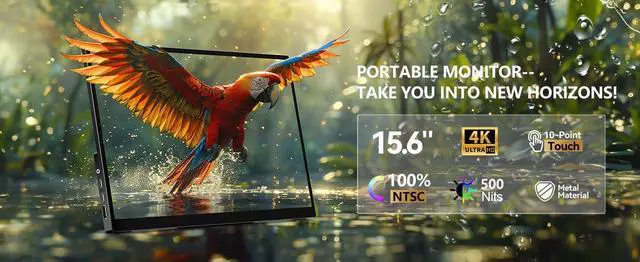 15.6 "4K display screenThe portable touch monitor uses IPS screen display technology, built-in 38402160 pixel FHD LCD screen, Compared to other monitors, the wider color gamut - 100%RGB, higher brightness - 500 nits, higher contrast - 2000:1, wider viewing Angle - 178, gives you more vivid images with sharp motion and detail. 100%RGB provides a wider color space that is accurately displayed on the screen for professional photo editing and image viewing, enhancing your viewing experience. ^^ 10-point touch display 15.6 -inch touch screen display with 10-point touch, high sensitivity and short response time.