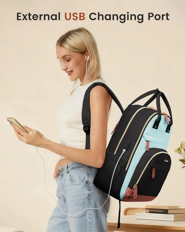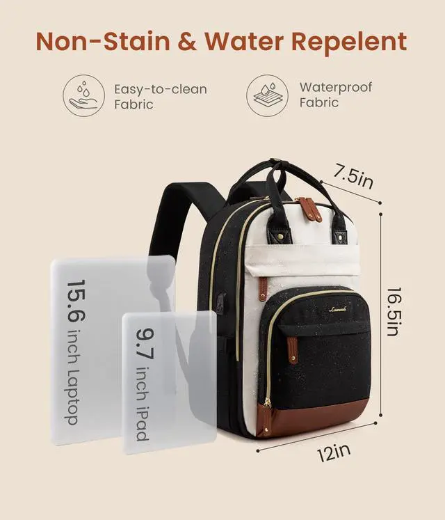 weight: 1.8 lb. ^^ LAPTOP PROTECTIONThe backpack with laptop compartment has a dedicated separate 15.6 -inch laptop pocket, a 9.7 -inch iPad slot. The pockets are sewn around with a cushioning material that maximizes physical protection for your laptop. ^^ USB PORT DESIGNGreat tech design. You can easily connect your phone to the USB port, giving you a more convenient way to charge your phone while walking. (POWER BANK IS NOT INCLUDED) ^^ COMFY & ANTI-THEFT DESIGNMesh airflow shoulder strap design, ergonomic shoulder strap length. Rivet-reinforced double handles, and the pack is reinforced and sewn at every stress point for absolute durability. An Anti-theft Pocket on the back. It is safe guaranteed for protecting your valuable items inside. No need to worry about stolen items. ^^ LUGGAGE STRAP DESIGNBackpack for traveling on airplane. Designed for hiking, it helps you free your hands and back from the burden. Make your travel more convenient and enjoyable. Work necessities, college supplies and travel essentials. ^^ MULTIPURPOSE BACKPACK & QUALITY WARRANTYThis backpack purse is perfect for University, work, travel, business, daily use and outdoor activities.