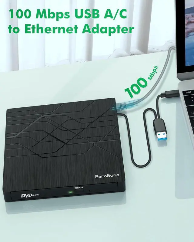 Say goodbye to the trouble of not being able to connect to the network, and you can also save you from the anxiety of unstable network and slow network speed brought by wireless network. It's a perfect choice for a device that is without network port or port failure to connect to the wired network. ^^ What You GetPeroBuno Super External CD/DVD Drive *1, USB A to DC Power Supply Cable*1, CD Drive Storage Bag*1, DVD Drive Carrying Case*1, User Manual*1, PeroBuno up to 24-month after-sales service, and 7-day/24-h friendly customer service. If you have any problems, we will 100% solve them. ^^ These Things You Need to Know Before BuyingThis external disc drive can only start its job af