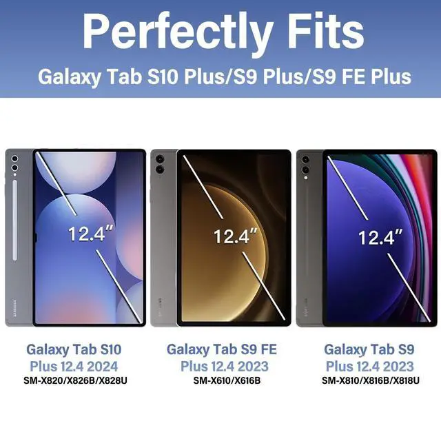 Compatible with Tab S10+/S9+/S9 FE+ 12.4E xclusively designed for Samsung Galaxy Tab S10+ Plus 12.4 inch (Model SM-X820/X826B/X828U) 2024 Release, Samsung Galaxy Tab S9+/S9 Plus 12.4 inch (Model SM-X810/X816B/X818U), Samsung Galaxy Tab S9 FE+/S9 FE Plus 12.4 inch (Model SM-X610/X616B) 2023 Release tablet, Not compatible with any other devices. Please kindly check the model number before purchase ^^ Well-Protect Keyboard CaseMade of premium TPU leather. The well-made case gives you a comfortable touch feeling. Premium composition leather exterior provides full protection for your tablet, greatly reduces the damage to your tablet caused by collisions, Soft anti-slip interior protects your tablet from being scratched.