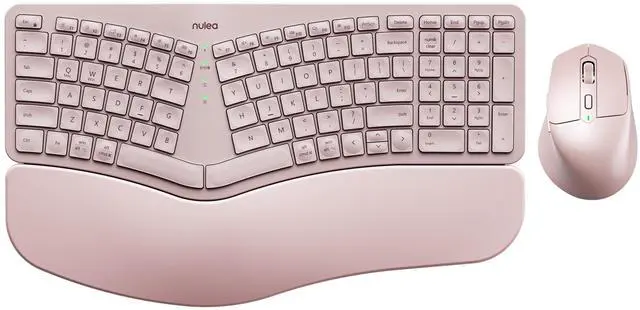 ^^ Ergonomic Design Excellence: Experience ergonomic comfort with the Nulea wireless keyboard featuring a curved and split key-frame. This design helps position your wrists and forearms naturally, with scooped keys that match the shape of your fingertips for quick, responsive typing. Ideal for all-day typing sessions.