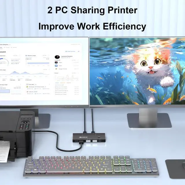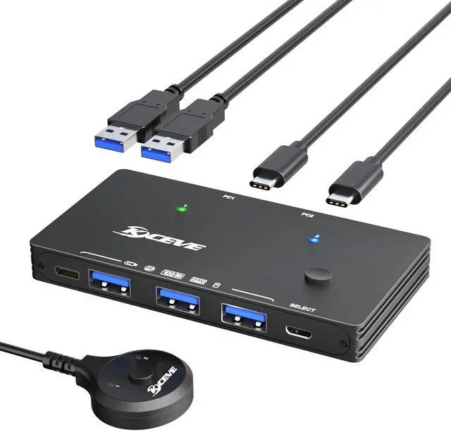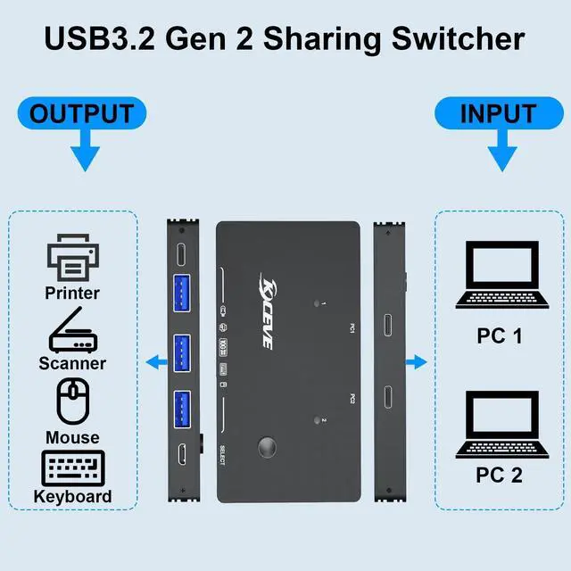 This USB C switch allows 2 USB-C computers to share 4 USB device, such as printer, scanner, mouse, keyboard, card reader, flash drive and other USB deivce. ^^ USB 3.2 switch for 2 USB-C laptops, it is friendly to USB-C computer user. Provided with 2 excellent USB C-C cables (60cm) and 1 wired control. This wired control is big and touch feel comfortable, this is upgraded by KCEVE team. ^^ USB 3.2 switcher 2 computers supports ultra-fast USB 3.2 data transfer, and is backward compatible with USB 3.0 and USB 2.0 devices.
