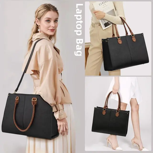 Large Capacity Laptop Tote Bag: This laptop bag for women is 16.7" x 6" x 12.2" and weighs 3 lbs, designed for laptops up to 15.6 inches. It has dedicated laptop and tablet compartments with premium padding for protection. With 12 compartments and pockets, including anti-theft and pen slots, it ensures organized storage. The included clutch purse can be used separately or within the main bag, perfect for storing your phone, keys, cards, and makeupan all-in-one bag. ^^ Comfortable and Easy to