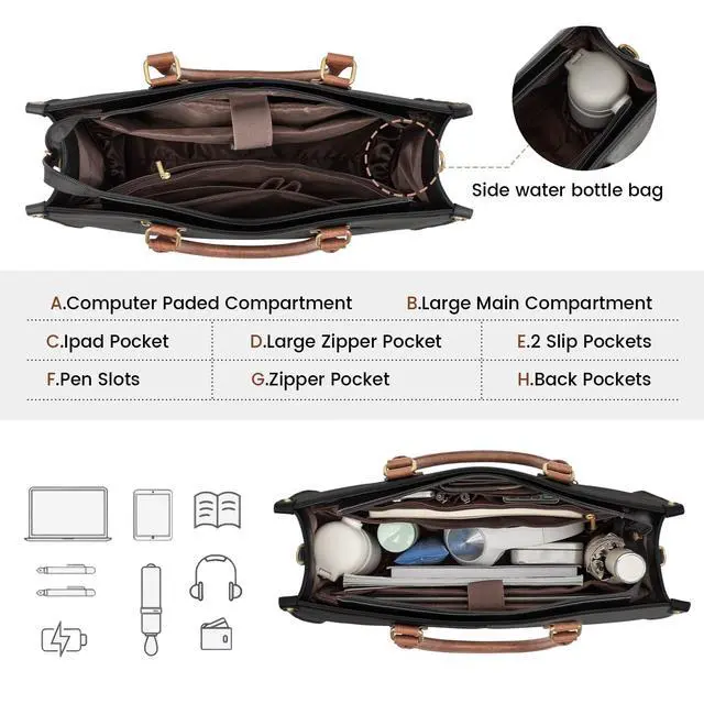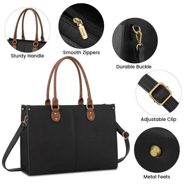 Carry: This Work tote bag for women comes with a detachable, adjustable shoulder strap and a sturdy leather handle, offering both practicality and comfort. It emphasizes versatility, serving as an office briefcase, handbag, shoulder bag, or crossbody bag to meet various needs, while showcasing a stylish flair.
