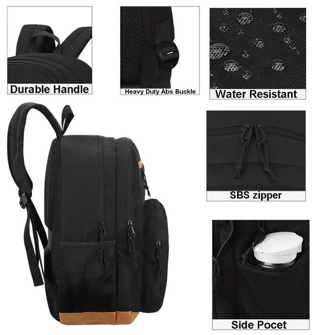 ^^ Classic Design: Total 4 compartments and two side pockets, main compartment with 15.6 laptop pocket and an extra padded sleeve for tablets or Kindle, can storage books and business files while still having room for daily necessities, front compartment with organizer and 2 front pockets provide plenty of capacity for the organization. 2 elastic side pockets can fit different size of bottles.