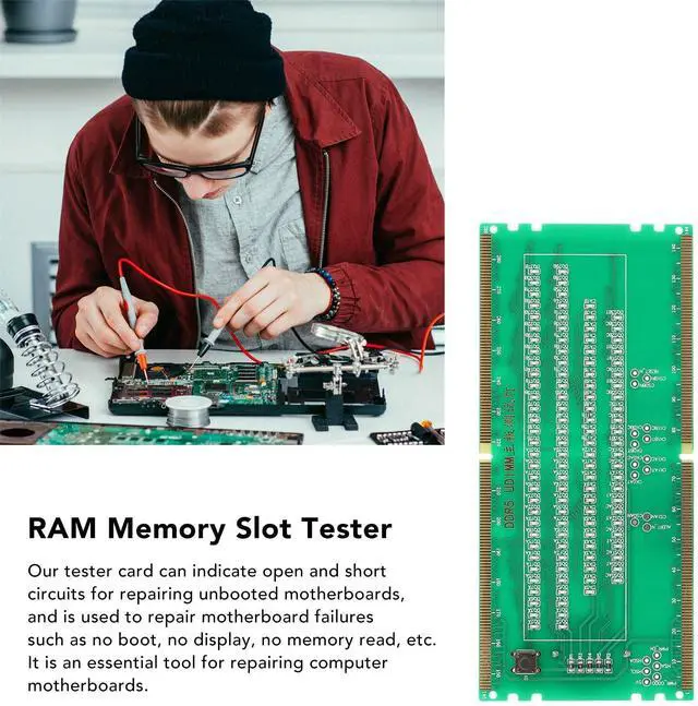 ^^ ACCURATE ILLUMINATION: Equipped with LED lights, RAM board provides enhanced visibility during diagnostic procedures, illuminating problem areas with accuration. Whether you're working in low-light conditions or need to pinpoint specific components on the motherboard, the bright LED lights offer clear and accurate illumination, making it easier to identify faults and streamline the repair process.