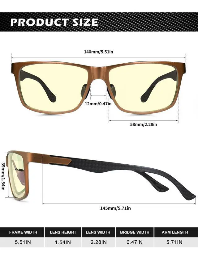 • Premium Temple Material: With superior Al-Mg and carbon fiber composite temple, this type of blue light blocking glasses for men is ultra-light than pure metal frame, also more sturdy. No more worries about broken temples. As more suitable for anyone who often work or play games by the computer, do not miss this pair of practical and classic blue blocker glasses.