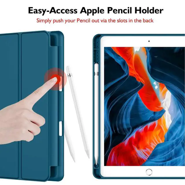 iMieet iPad 9th Generation Case 2021/iPad 8th Generation Case 2020 10.2 Inch with Pencil Holder, iPad 7th Gen 2019 Case with Soft Baby Skin Silicone Back, Auto Wake/Sleep Cover (Teal)