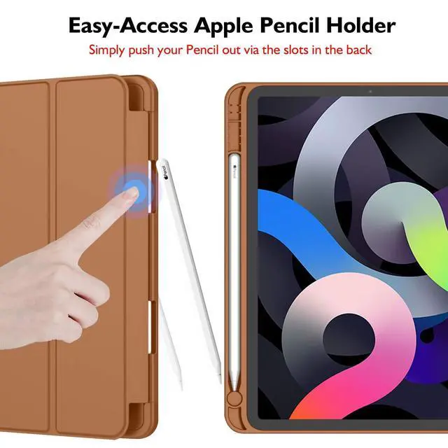 Number: A2072/A2316/A2324/A2325) 10.9 Inch Tablet. Not compatible with any other devices (Please check the back bottom of your tablet to find the model number). ^^ [Full Protection]- Made of PU leather and TPU, front and back covered by soft PU, the inside durable TPU can fix your Air 11/Air 5th/4th and protect its back cover and four corners, maximum protect your tablet from drop and scratch, the surface is soft and silky to provide a comfortable touch to the skin. ^^ Built-in Pencil holder for iPad Air 11/Air 5th/4th, Seamlessly supports Apple Pencil Pro/Apple Pencil 2nd Gen magnetic and wireless charging on the side ((Note: Apple Pencil is Not included) ^^ [Support Touch ID Function and Auto Wake/Sleep] Completely support newest touch ID key function to wake your iPad at any times. ^^ [100% Fit] - Precise cutout and design allow easy access to all ports, sensors, speakers, cameras.