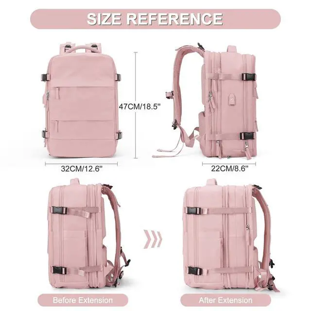 ^^ USB Port DesignThis backpack has a USB charging port, which can be connected to a power bank inside the bag, and a cell phone connected to the outside of the bag through a data cable, allowing you to charge your cell phone or iPad while walking, reducing the burden on your hands and avoiding miss information. Please note that the backpack does not come with a power bank and data cable, it is only for the convenience of mobile phone charging. ^^ Approved By Most FlightsExternal dimensions are 18.512. 68.6 inches (HWD), 2.8 lbs weight (manual measurement, for reference only, subject to actual measurement).