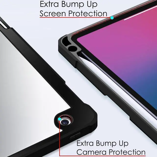 • Built-in Apple Pencil Holder Slot-> Securely grabs your Pencil in place tightly to avoid losing; two holes behind the holder allow you to push your pencil out conveniently.