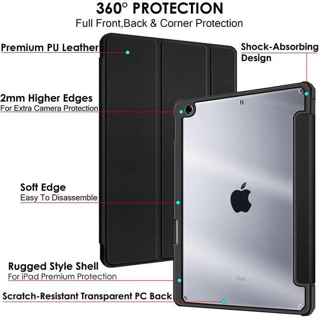 Key FeaturesExclusively designed for all iPad 10.2 9th & 8th & 7th Gen(2021/2020/2019)Smart Auto Sleep/WakePencil Holder Case with Soft Silicone Back for Extra ProtectionMulti-Angle Viewing/Typing StandEasy to InstallCompatibilityAll iPad 10.2 9th & 8th & 7th Gen(2021/2020/2019) ModelsiPad 10.2 2021 (9th Gen) WiFi (A2602 MK2K3HN/A, MK2L3HN/A, MK2N3HN/A, MK2P3HN/A, MK2K3LL/A, MK2L3LL/A, MK2N3LL/A, MK2P3LL/A)WiFi+Cellular (A2604, A2603, A2605 MK663HN/A, MK673HN/A, MK6A3HN/A, MK693HN/A, MK663LL/A, MK673LL/A, MK6A3LL/A, MK693LL/A)iPad 10.2 2020 (8th Gen) WiFi (A2270 MYLC2HN/A, MYL92HN/A, MYLA2HN/A, MYLF2HN/A, MYLD2HN/A, MYLE2HN/A, MYLC2LL/A, MYL92LL/A, MYLA2LL/A, MYLF2LL/A, MYLD2LL/A, MYLE2LL/A)WiFi+Cellular (A2428, A2429, A2430 MYN62HN/A, MYN32HN/A, MYN52HN/A, MYN92HN/A, MYN72HN/A, MYN82HN/A, MYN62LL/A, MYN32LL/A, MYN52LL/A, MYN92LL/A, MYN72LL/A, MYN82LL/A)iPad 10.2 2019 (7th Gen) WiFi (A2197 MW762HN/A, MW742HN/A, MW752HN/A, MW792HN/A, MW772HN/A, MW782HN/A, MW762LL/A, MW742LL/A, MW752LL/A, MW792LL/A, MW772LL/A, MW782LL/A)WiFi+Cellular (A2200, A2198 MW6Y2HN/A, MW6W2HN/A, MW6X2HN/A, MW722HN/A, MW702HN/A, MW712HN/A, MW6Y2LL/A, MW6W2LL/A, MW6X2LL/A, MW722LL/A, MW702LL/A, MW712LL/A)DuraSafe Cases - Durability & Safety of your device in Style.