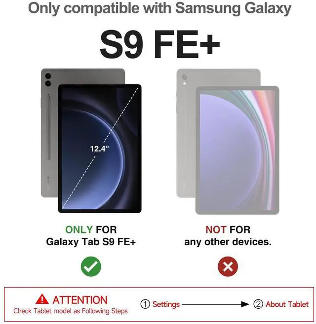 CompatibilityExclusively designed for Galaxy Tab S9 FE Plus. Unique appearance with hollow back design that it is easy to dissipate heat without increasing weight. Precise cutouts, easy access to all buttons, ports and camera. ^^ Dual-layer Hybrid Military Grade Drop ProtectionConstructed in two parts, a front protective piece with raised edges to keep your Galaxy Tab S9 FE Plus screen up off surfaces and a back piece that's made of both shock-absorbing TPU and hard, drop-resistant Polycarbonate materials. ^^ Built in Screen Protector and Pen HolderThe Galaxy Tab S9 FE Plus Case with built-in screen protector prevents your Samsung Tab S9 FE Plus 12.4 inch screen scratches without compromising sensitivity.