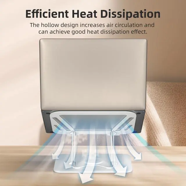 ^^ Heat Dissipation Design: Boasting a hollow design, the foldable laptop stand maximizes ventilation, preventing your notebook from overheating and helping it function efficiently.