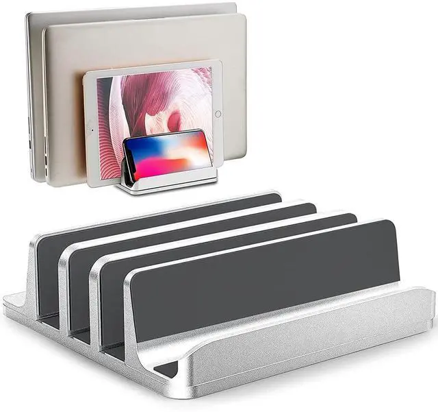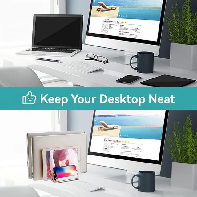 Multi-Functional Laptop Stand: The adjustable vertical laptop stand cradles up one laptop and two phone or one iPad. This vertical laptop holder is great for space-saving and building up a neat and organized space for a desk.