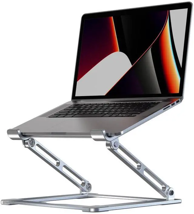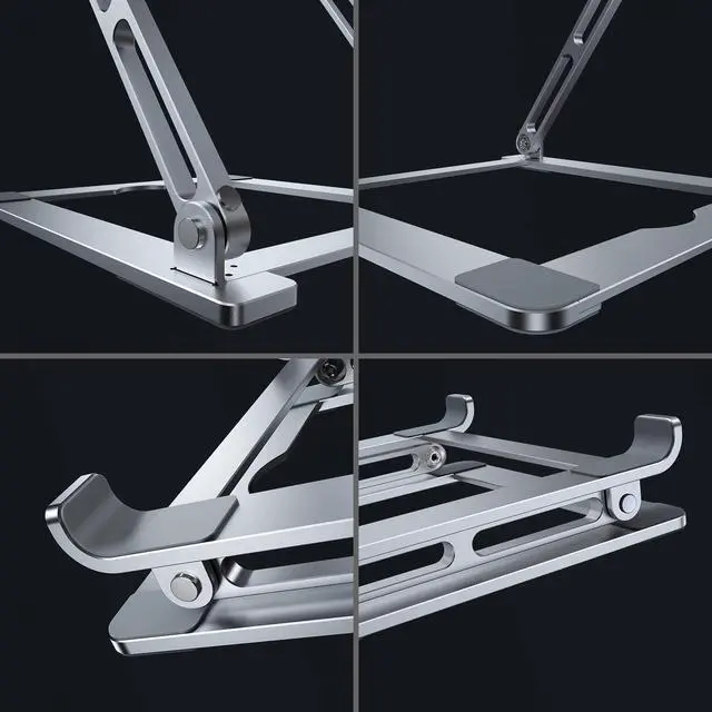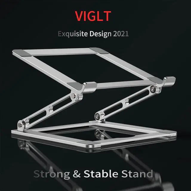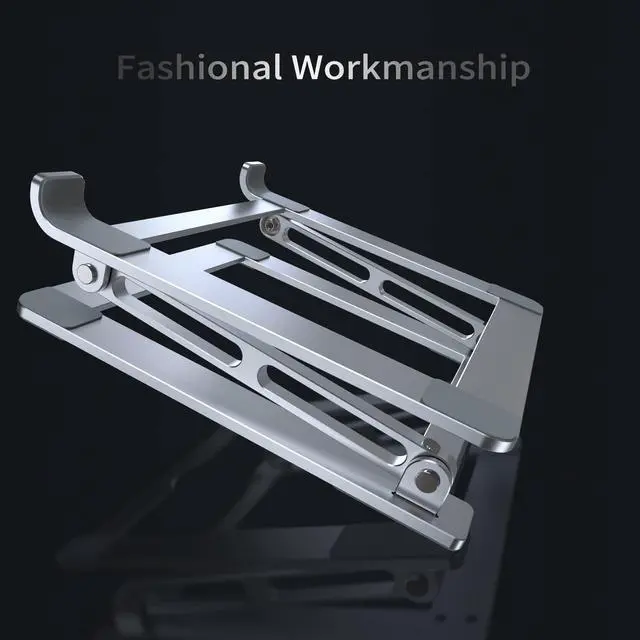 Ergonomic Laptop Riser-The laptop stand elevates the laptop screen to 8 inch to eye level and helps fix your posture and reduce neck pain, back pain and eye strain, creating extra space and help to work more ergonomically. It's very comfortable for working at home, office and outdoor, making typing more easier. ^^ Folding Portability & Multi-use Practical- No assembly required. Foldable laptop holder to save space for easy storage and handle for easy carrying. This portable laptop stand works in a variety for setting including: office, meeting room, library, kitchen, and at home to hold the laptops, projectors, menu, tablets, music scores, magazines etc. A practical gift for your friends and family. ^^ Sturdy & Protective- The laptop computer stand is made of thicker 6mm aluminum alloy, and supports up to 11 lbs. (5kg) weight. Twelve slide-proof silicone pads keep the stand from sliding and to be more stable, 30mm protective double hooks ensure your computer does not slide off the stand offering maximum protection for your device from any scratches and sliding. ^^ Heat DissipationPremium Aluminum alloy material acts as thermal pads to help keep your laptop cool. The forward-tilt angle and open design offers great ventilation and airflow to prevent your notebook from overheating. ^^ Wide CompatibilityThis laptop stand fits all tablets and laptops from 10 to 17.3, such as Mac MacBook Air/MacBook Pro/ Microsoft Surface/ Google Pixel book/ Dell XPS/ HP ASUS/ Lenovo Acer /Chromebook and more 10 inch - 17.3 inch laptop notebooks.