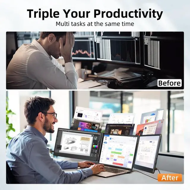 Wide Compatibility & Application: ZUMWALT laptop screen extender monitor portable compatible with Mac/Windows/Android/Chrome/Switch via USB-C/HDMI. Triple portable laptop screen extender perfect for remote workers, home offices, online learning students, online meetings, gamers, designers, coders, programmers, stock trading and financial analysts.