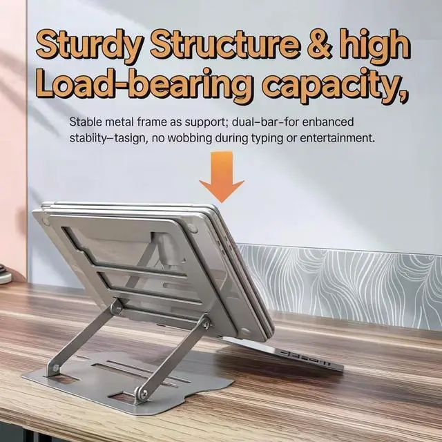 Laptop Stand made of high-quality metal material, the larger heavier base greatly improves the stability of the notebook stand. The laptop stand supports up to 11 lbs will never shaking, sliding and falling when you type on your laptop with this notebook holder.