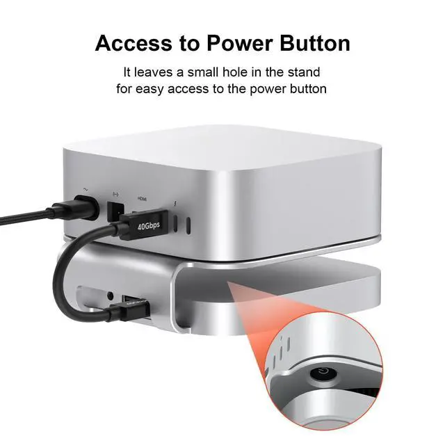Power Button: It leaves a small hole on the stand, making it easy to reach the power button on the bottom of the Mac Mini M4/M4 Pro without having to lift it up every time.