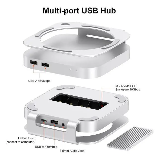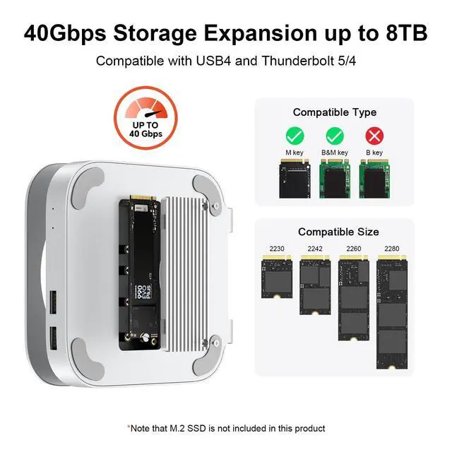 Ultra-Speed SSD Enclosure: It supports storage expansion using M. 2 NVMe SSD drives up to 8TB capacity and 40Gbps speed via the Thunderbolt 5 port on the back of Mac Mini M4/M4 Pro. It is also compatible with Thunderbolt 4 and USB4 ports.