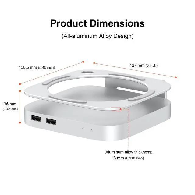 ^^ Avoid Overheating: It raises your Mac Mini M4/M4 Pro by 3.6 cm ( 1.42 inches), creating more space for ventilation and cooling.