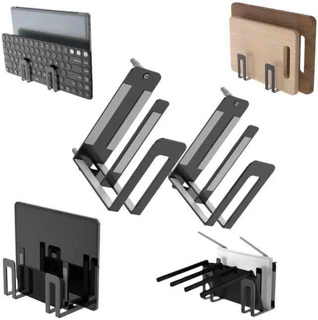 Name: Multi functional wall mount bracket for laptops and keyboards Multi purpose electronic device wall mount bracket: This multi-purpose wall mount bracket can load-bearing 22 pounds and is suitable for devices with a thickness of no more than 1.5 inches, such as tablets, laptops, keyboards, TV boxes, routers, set-top boxes, mobile phones, and other small electronic devices. You can also use it to store your cutting board on the wall-mounted Double layered design is more practical: Your device Can be adopted in multiple ways storage, for example, it can store two laptops at the same time, or one laptop and one keyboard, or two keyboards, or two phones and two tablets, or two cutting boards and other items