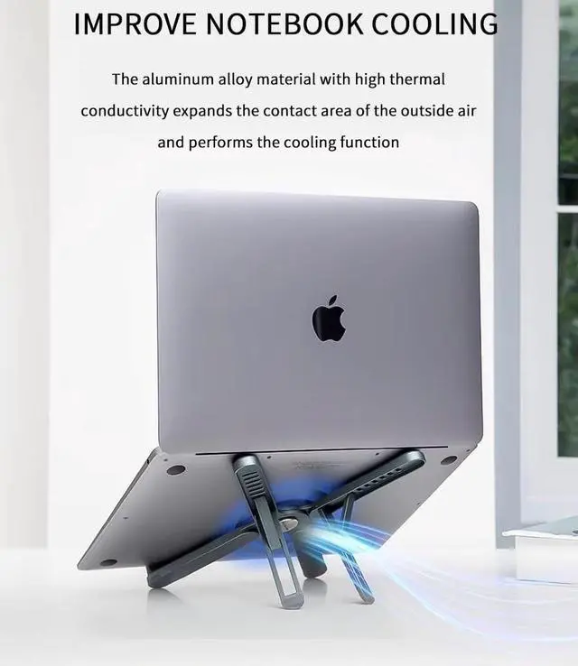 Durable Construction: Made from high-quality aluminum alloy and silicon materials, this laptop stand is built to last, with a lightweight yet sturdy design that can support devices of various sizes and weights.